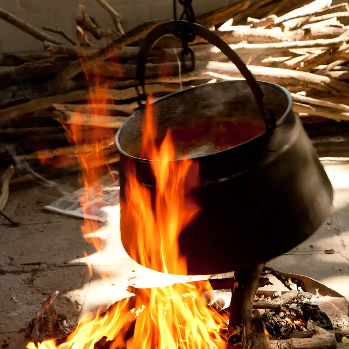 Kotlíka zavesíme nad silný oheň tak, aby dno bolo blízko plameňov.