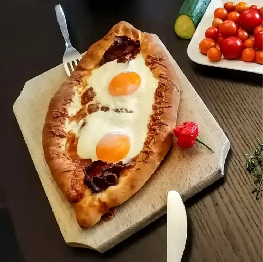 Chačapuri sa podáva horúce priamo po upečení. Roztopené maslo, vajíčko a syr sa jemne premiešajú s vnútrom cesta, čím vznikne krémová a veľmi chutná náplň.